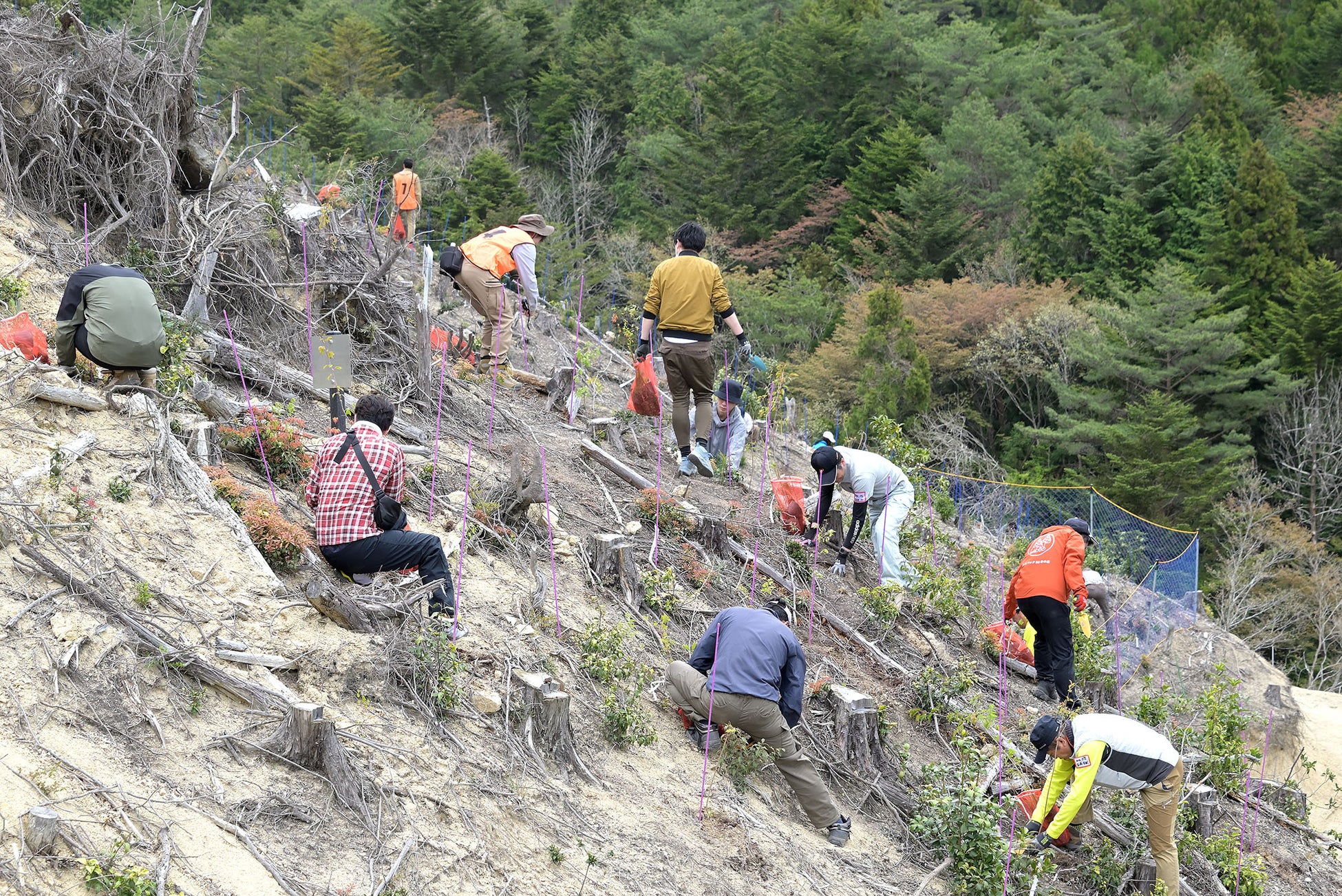 2022年11月には、林野庁の「法人の森林」制度を活用し、地域の里山林に生育する在来種の苗木を植栽し森を育てる「エスペック50年の森」づくりを開始しました。兵庫県立大学と連携し、用材生産と環境保全の両立を図るとともに調査・研究フィールドとして活用しています。