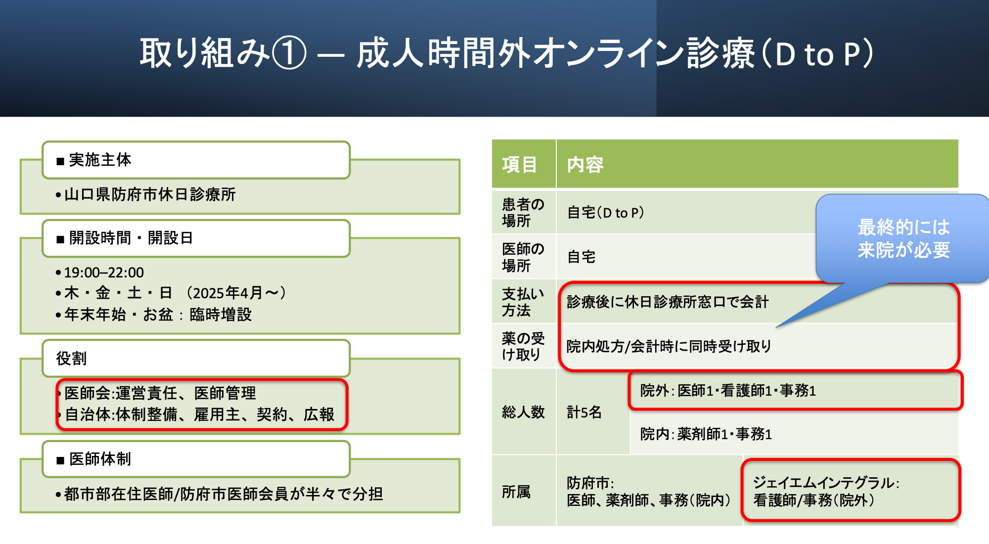 今回の登壇を通じ、弊社がご支援させていただいております山口県防府市・岩国市の現場で得られた実践的な知見を、オンライン診療による課題解決に取り組む全国の医療関係者の皆様と共有できたものと確信しております。