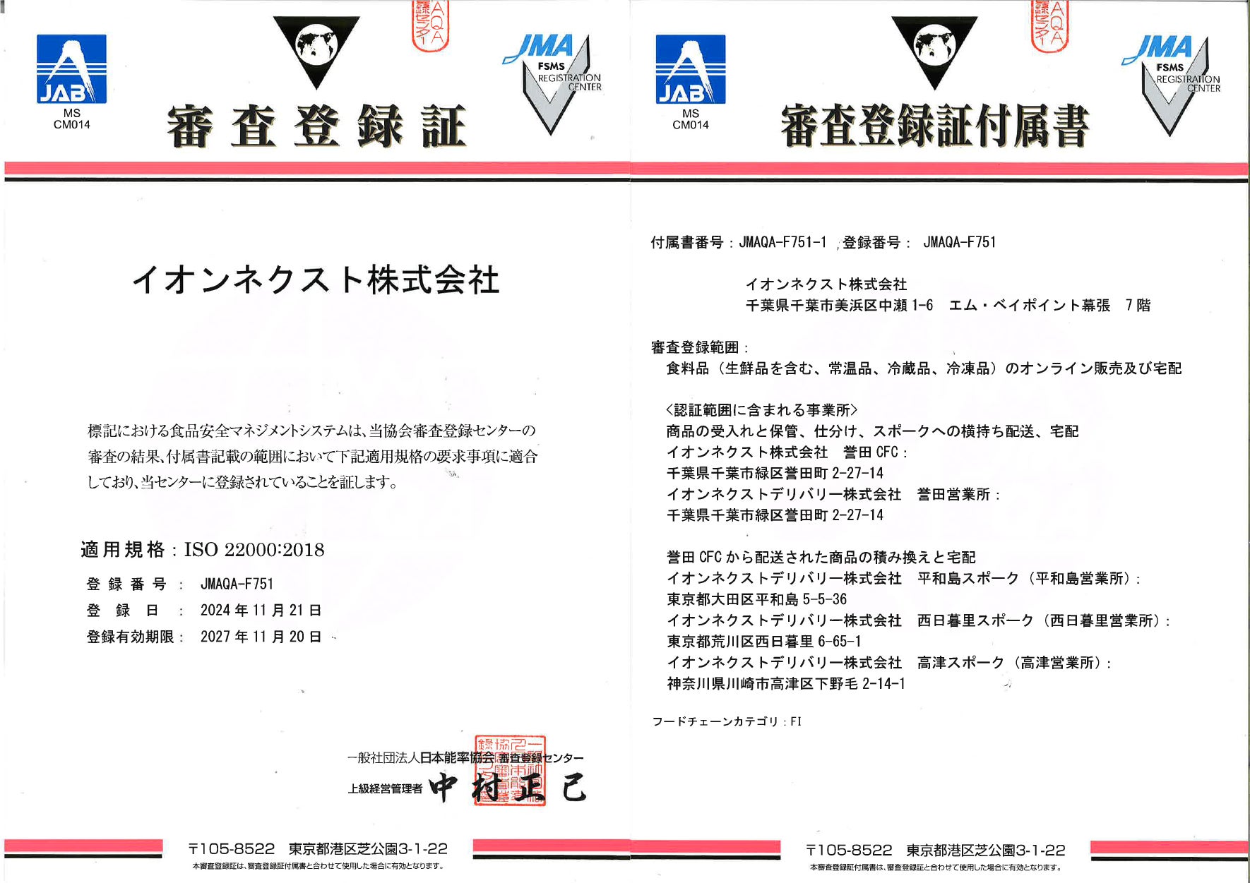 イオンネクスト株式会社(本社:千葉市美浜区、代表取締役社長:バラット・ルパーニ)は、食品安全マネジメントシステムの国際規格であるISO22000の認証を取得しました。