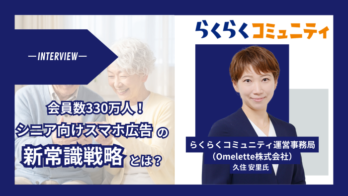 Omelette株式会社(東京都港区、代表取締役 羽野仁彦)は、同社が広告販売窓口を運営する国内最大級のシニア向けSNS「らくらくコミュニティ」(会員数330万人)における広告・マーケティング手法について、独自のデータと知見を公開しました。 シニア向けデジタルマーケティングの最前線で培ったノウハウとして、「検討期間の長さ」「保存行動の活用」「O2Oによるクロージング」という3つの視点からその実態を整理しています。あわせて、これらの知見を実務に活かすための無料オンラインセミナーを2026年5月15日(金)に開催します。