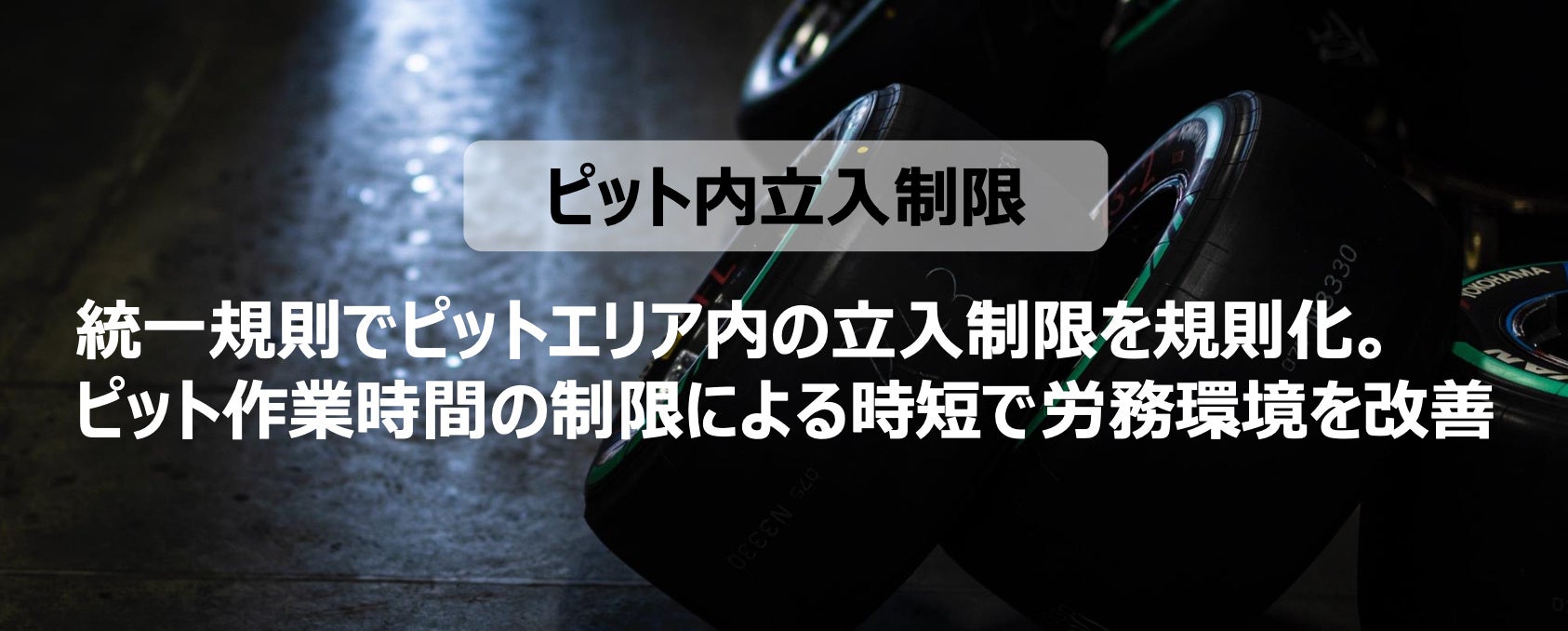 SUPER FORMULAでは2025年シーズンより、統⼀規則を⼀部変更し、レース現場における労務環境改善に取り組みます。統⼀規則でピットエリア内の⽴⼊制限を規則化し、ピット作業時間の制限、短縮化を図り、労務環境の改善を⽬指します。モータースポーツに関わる⼈材の確保は急務であり、働きやすい環境を作ることは我々の使命です。若者が憧れる職場づくりを⽬指してまいります。