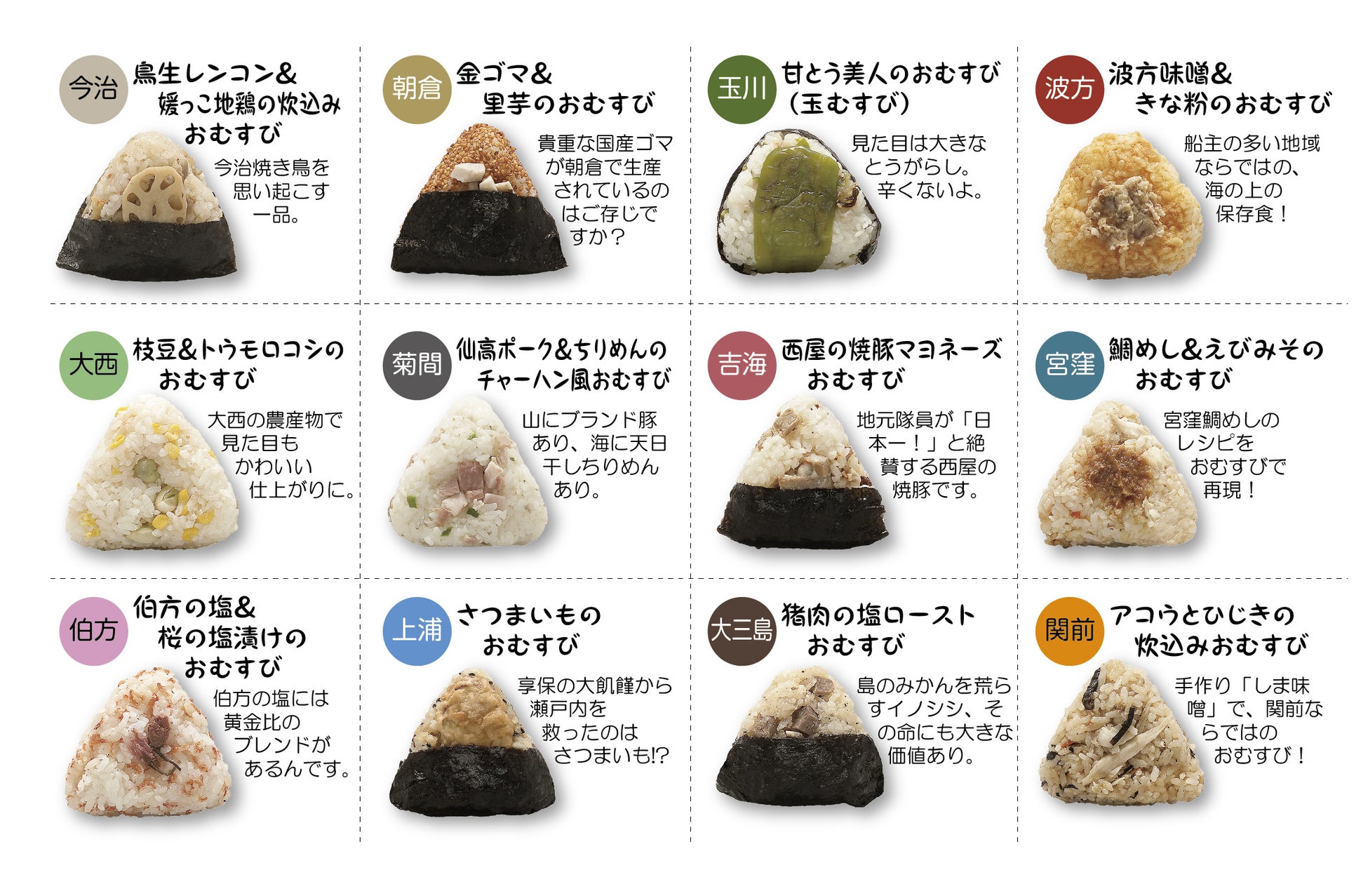 「むすんだ絆、つながる未来」 12市町村による大合併から20年を迎えた今治市が贈る 地域の食材がギュッと詰まった「12のおむすび」