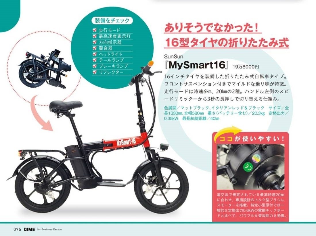 大人気!免許不要の電動バイクMySmart16(マイスマート16)のNewモデル追加生産分が入荷!女性や高齢者にもお勧めの安定走行可能な自転車タイプ!