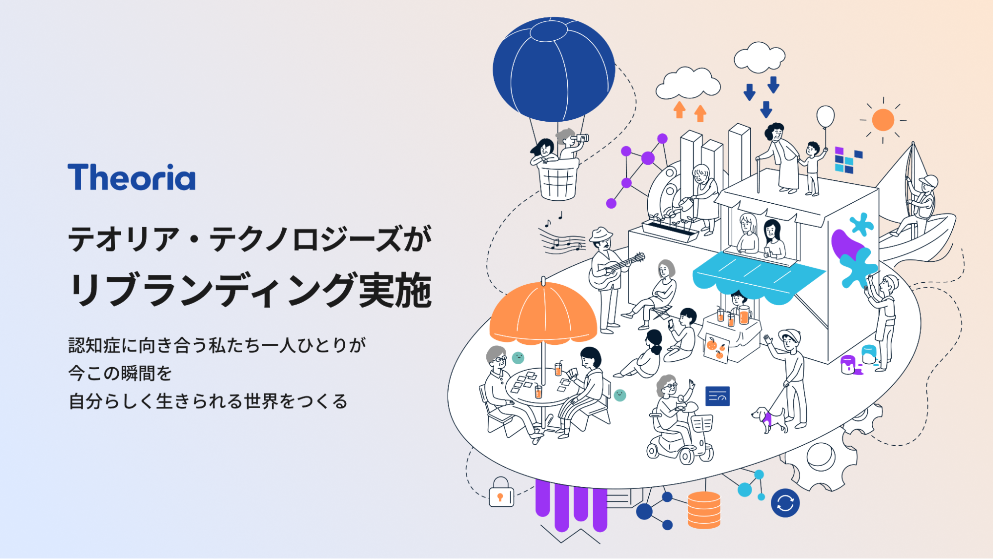 テオリア・テクノロジーズは「認知症との向き合い方を、テクノロジーで変えていく。」をミッションに掲げ、エーザイグループの一員として認知症という社会課題の解決を目指しています。