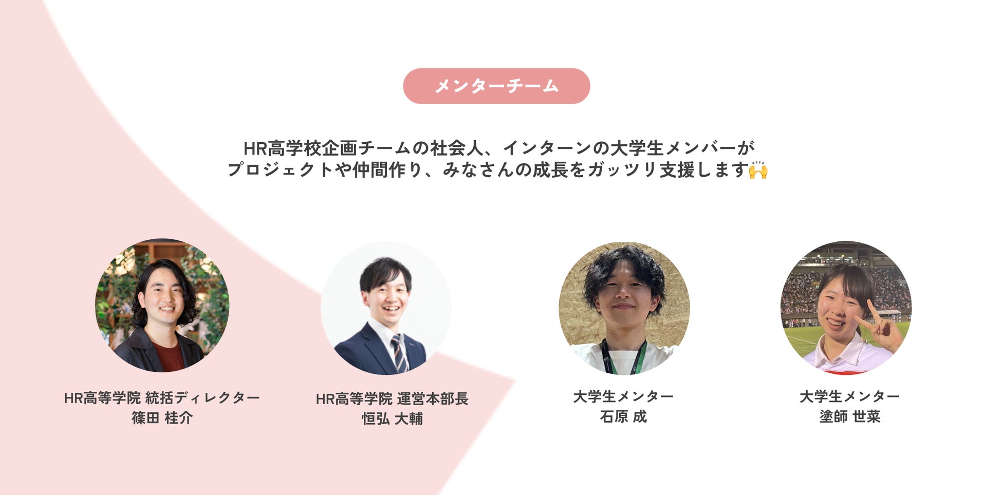 自分で考えて、主体的に物事に取り組むという経験が、高校生活を面白く豊かにするだけではなく、社会に出てからもキャリアオーナーシップを持つ人材の育成に繋がり、また、HR高等学院を企画する我々からしても、「日本一自由で、面白くて、本気で学べる学校」を創るには、まさに参加学生の方々の柔軟なアイデア、率直な想いが必要不可欠だと捉えています。