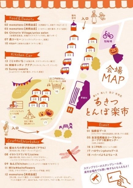 当日は飲食店やハンドメイド雑貨などによる出店、赤ちゃん連れの方が楽しむことのできる企画や10月ならではのハロウィン企画も用意しています。