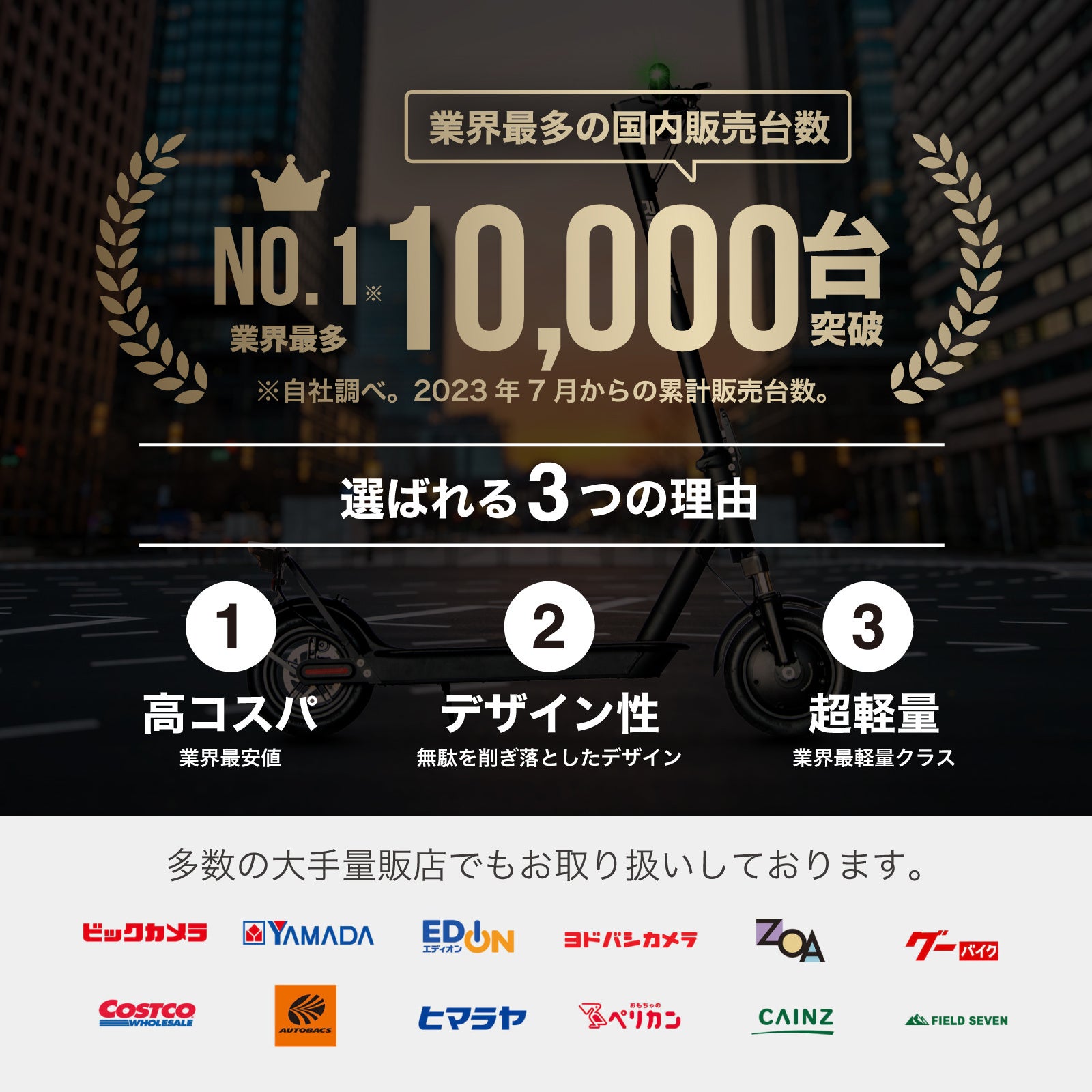 新道路交通法実施約1年、電動キックボードタイプ「RICHIBIT ES1 PRO」10,000台、電動バイクタイプ「RICHIBIT CITY」2,000台、合計12,000台の販売実績で新市場をリード。