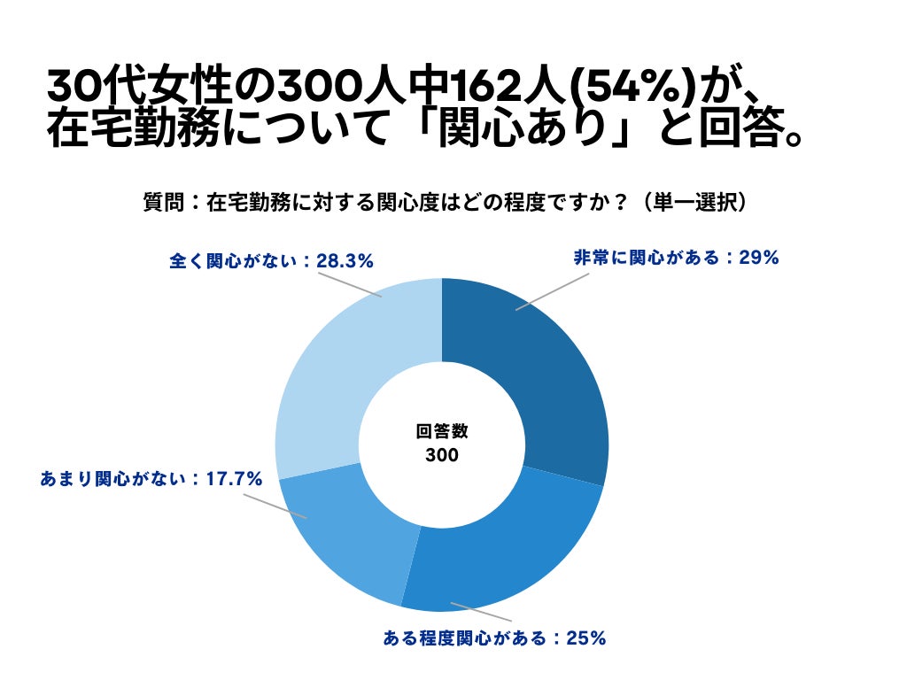 30代女性の300人中162人(54%)が、 在宅勤務について「関心あり」と回答【在宅勤務に関するアンケート】