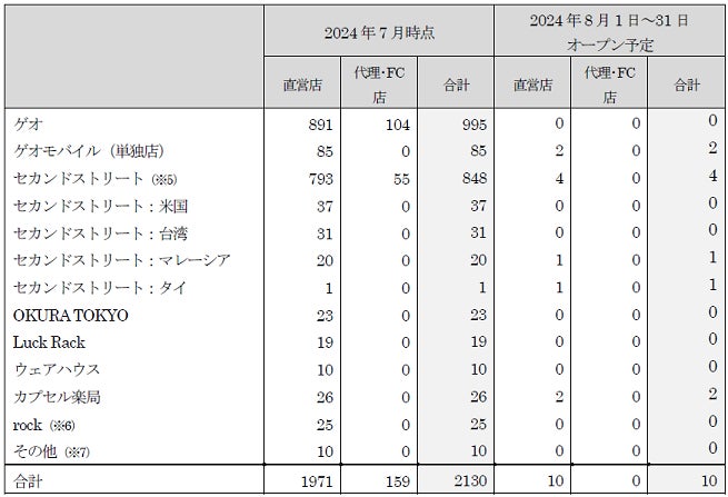 ※5)スーパーセカンドストリート、セカンドアウトドア、ジャンブルストア、Doki-Doki、Oki-Doki含む