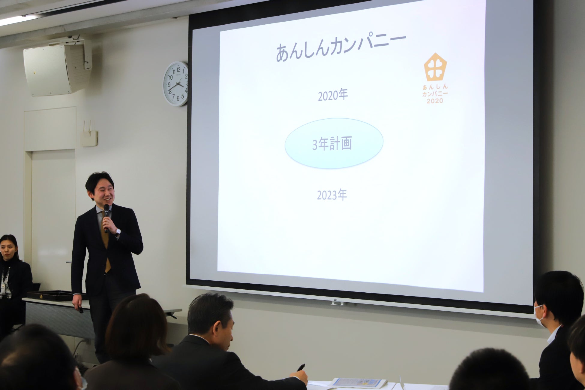 あんしんカンパニー2024に2社を決定し、去る2月21日に表彰式と事例発表会を開催しました。多くの市内企業が参加し、具体的な取組内容の発表を熱心に聴き入りました。