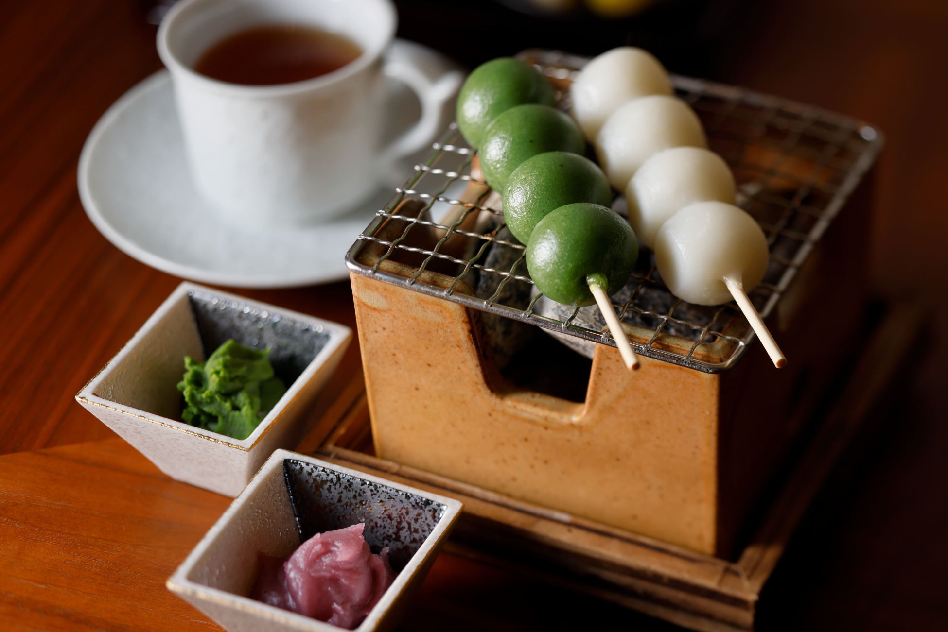 炭火で焼き立ての団子にお好みの餡を添え、香りとともに味わう特別なひとときをお楽しみください。