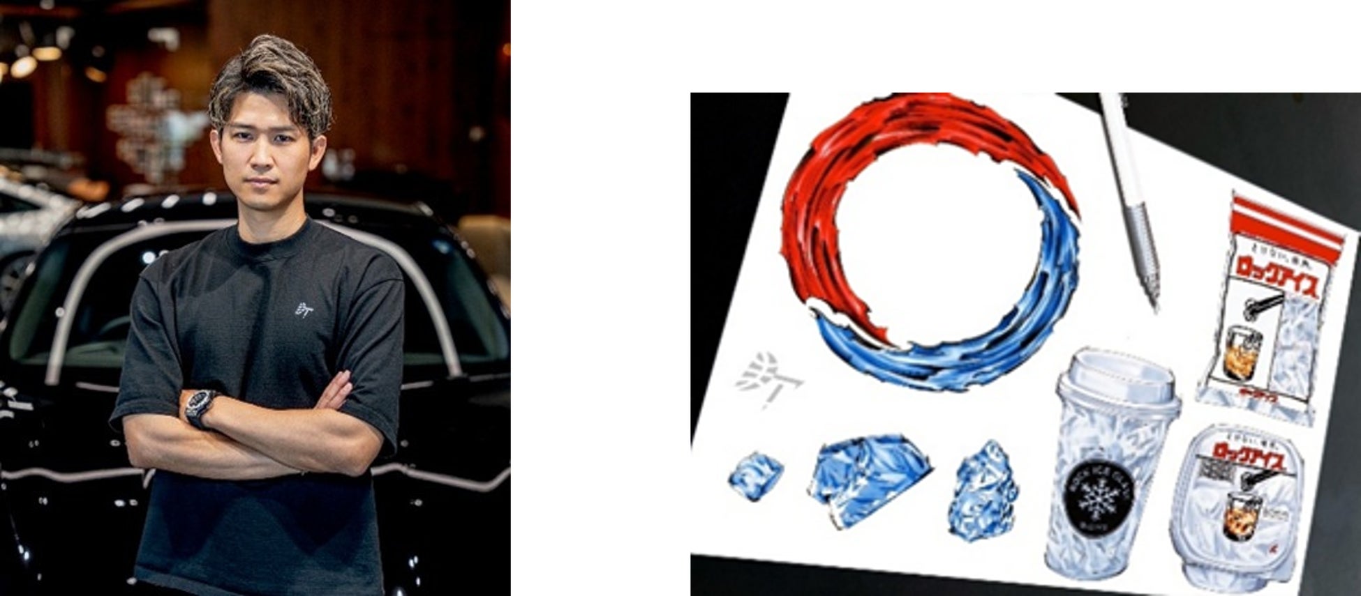 田村氏の作品がもつ情熱や躍動感、チカラ強さが「情熱を持って日々頑張っている人を応援するブランドでありたい」というロックアイスのブランドメッセージである「とけない、情熱。」のイメージと合致し、今回のコラボレーションに至りました。
