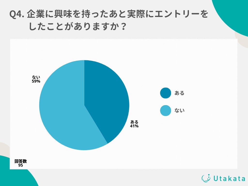 「企業に興味を持ったあと実際にエントリーをしたことがありますか?」と質問したところ、「ある」が41.3%、「ない」が58.7%という回答となり、TikTokは採用に効果的ということがわかりました。