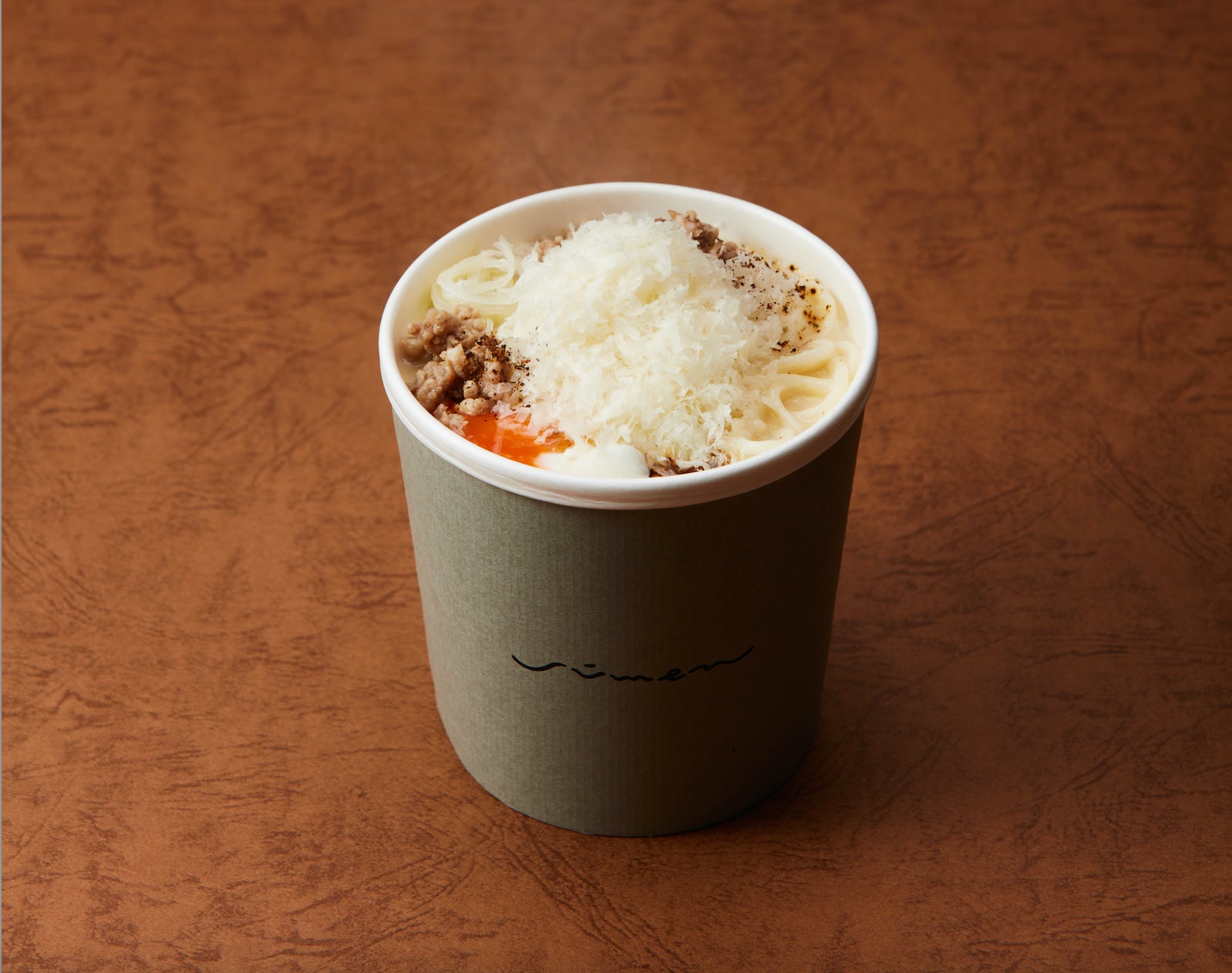 てのべたかだやの『むっちり』を使用し、素麺よりも太く、うどんよりも細い仕上がりの麺で、「むっちり」とした噛み応えのあるコシの強さがあります。上質なのど越しをお楽しみいただけます。てのべたかだや自慢のお出汁を、冬限定の濃厚クリーム仕立てに。スモーキーなお肉と温泉卵、さらに黒七味とたっぷりパルミジャーノレッジャーノをあしらいました。