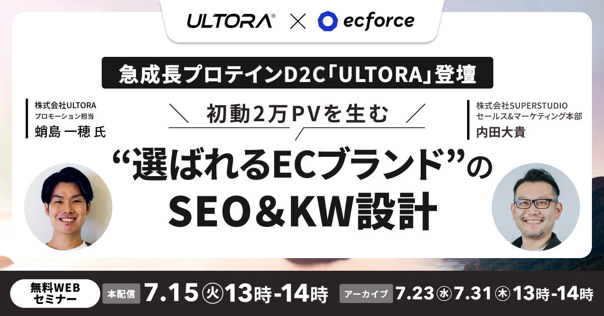 そこで、その悩みを克服し初月2万PVを達成したプロテインD2Cブランド「ULTORA」とその解決方法を徹底解説します!主催は株式会社SUPER STUDIO社。