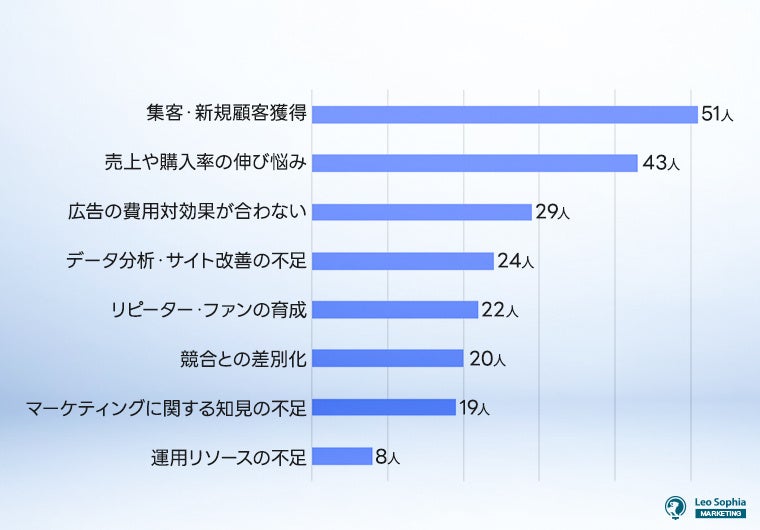 今回の調査から、EC事業者が直面する主要課題は「集客力の向上」と「集客に関する専門知識やノウハウ」であることが分かりました。