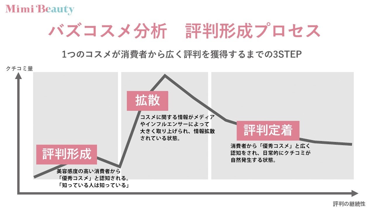 ※Mimi Beautyでは、SNS上でコスメの情報が拡散され評判を形成する過程を独自に分析いたしました。