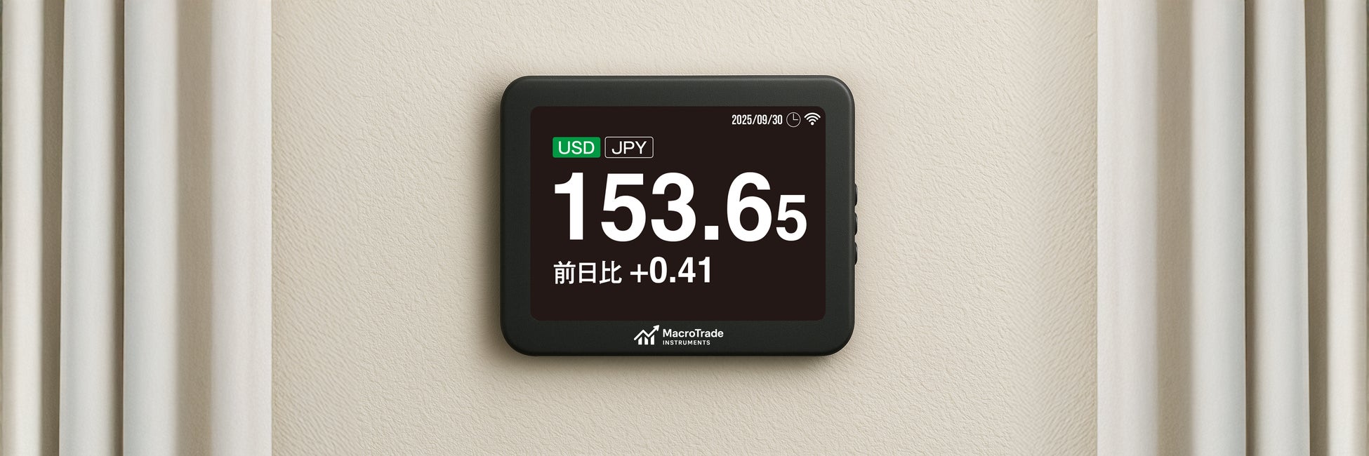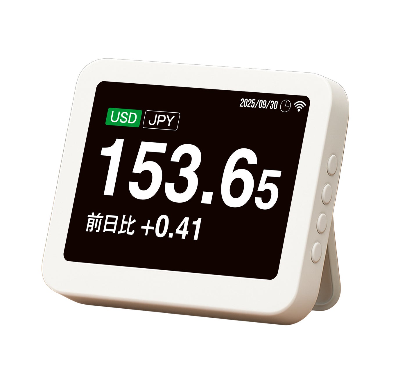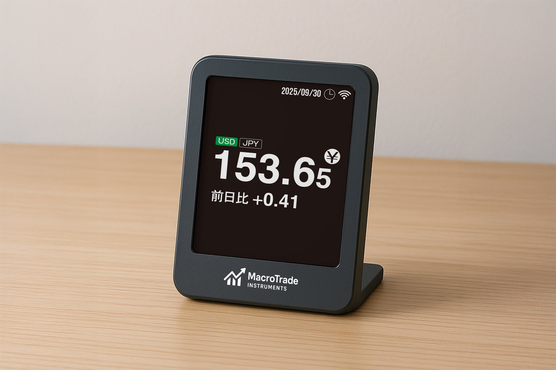 特化モデル:第一弾は為替表示に最適化。見やすさを重視し、複雑なセットアップは不要で即設置。