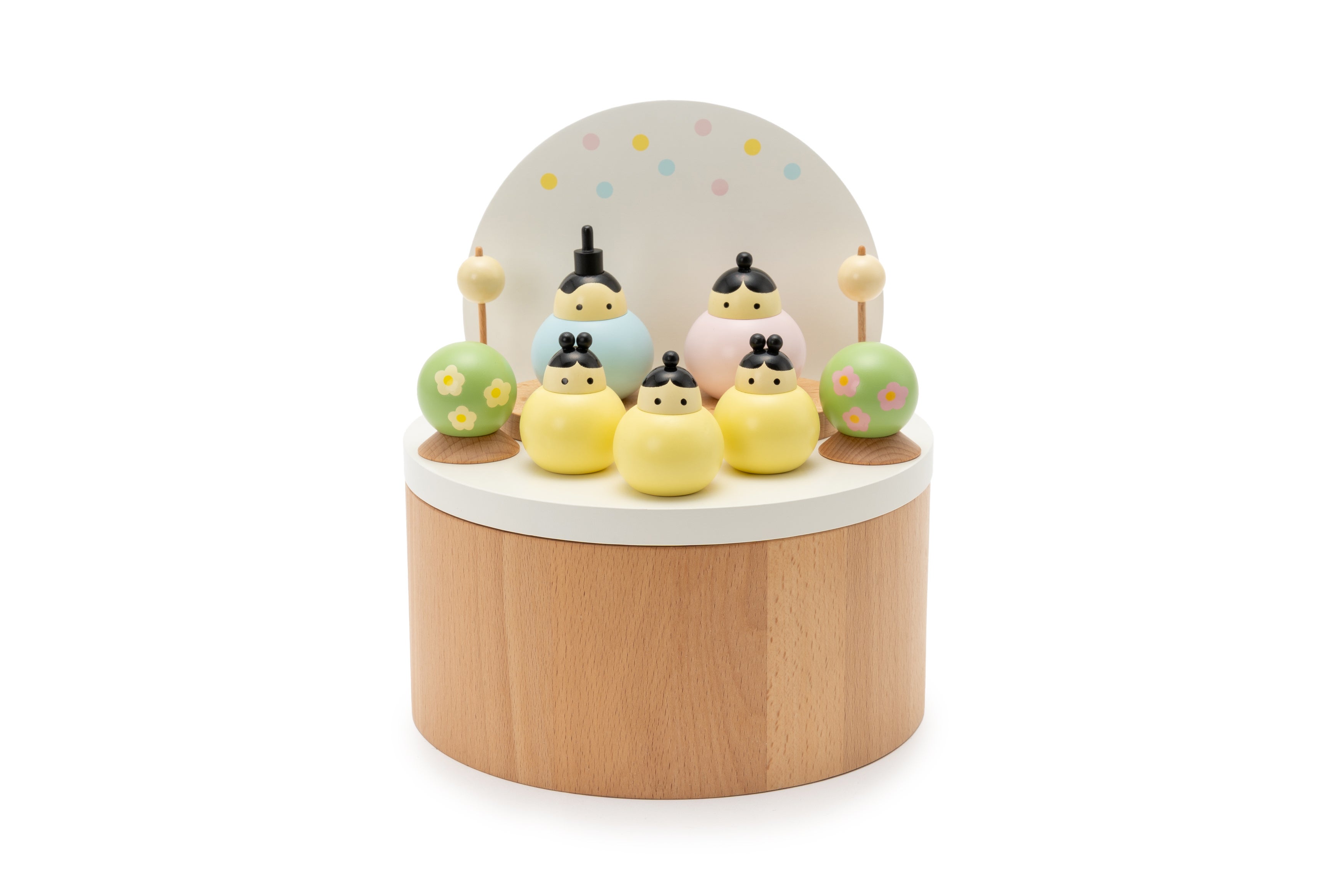 小さくかわいい赤ちゃん顔の雛人形や五月人形を他社に先駆けて開発し、多くの女性ファンを魅了してきたリーディングカンパニーであり、少子化で節句人形市場が縮小する中でも、創業以来大きな成長を遂げてきたふらここの木製節句人形第一弾、木の雛人形「ころん」。