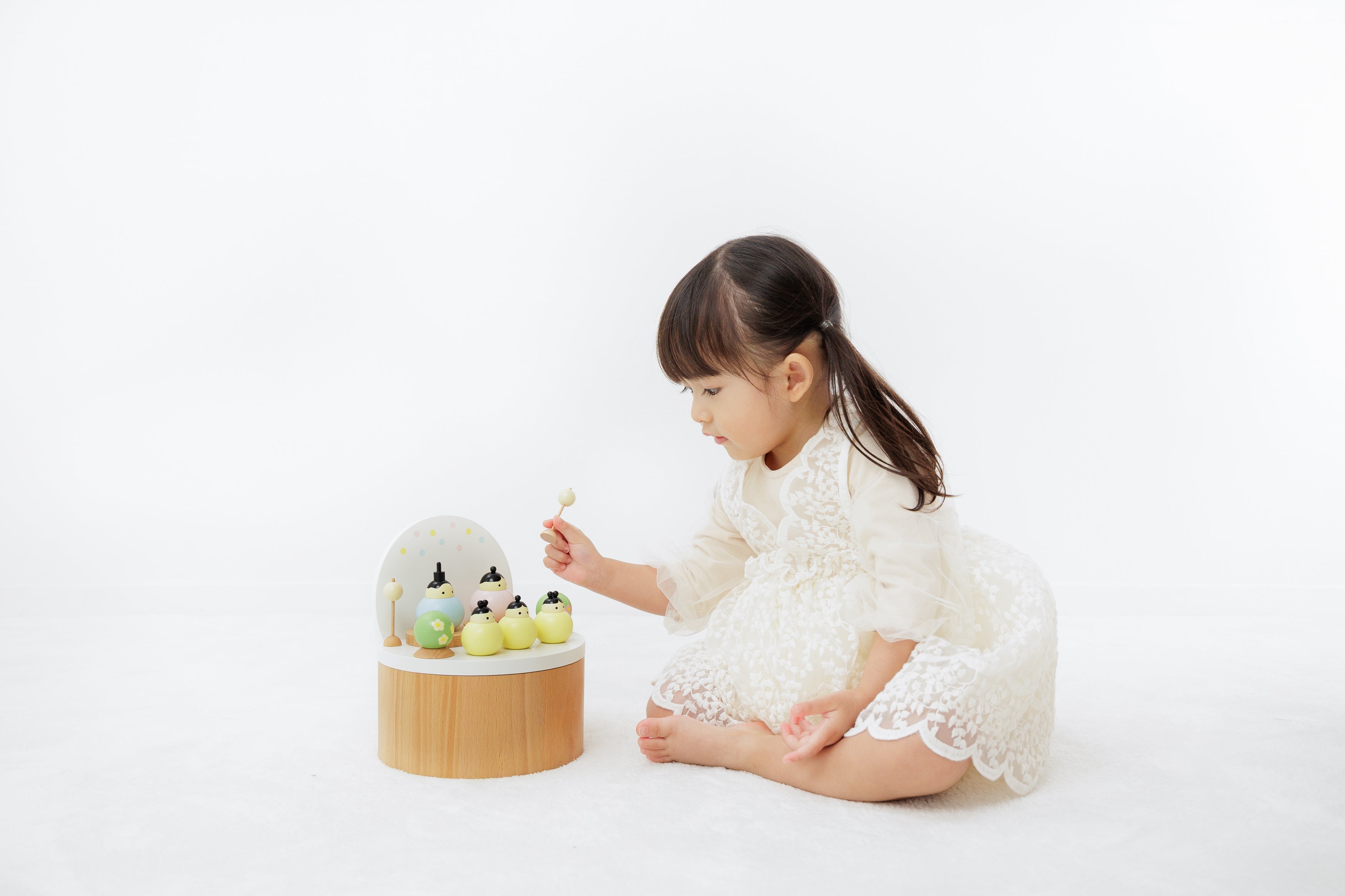 子供が成長する過程で雛人形に触りたがることは自然な行為であり、それを叱って止めさせるのではなく、今回のような飾り遊びを前提とした代替品を与えることで、鑑賞品としての雛人形との違いをお子様に教え、ふれて遊べると同時に、飾っても絵になる素敵な雛人形であることが木製節句人形の良さだと思います。