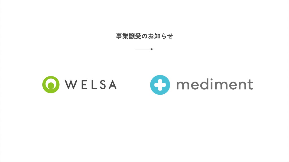 この度、インフォコム社のWELSA(ウェルサ)事業を譲受させていただく運びとなりました。WELSAをご利用中の法人様に、当社で開発・提供するmediment(メディメント)を円滑且つ、便利にご利用いただけるよう、努めてまいります。また、今後も多くのお客様からのご意見をプロダクトの改善・進化に活かし、多様化する社会のニーズに応えられるよう全力を尽くしてまいります。