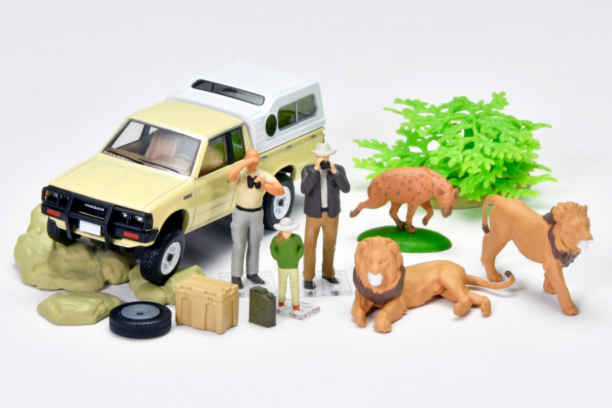 本商品に同梱される1/64スケールの動物フィギュアは、国内フィギュア制作のパイオニア「海洋堂」による造形・監修によるものです。リアリティあふれるミニカーと動物・人物フィギュアで、あなただけの情景をつくって、映え写真を撮ってお楽しみください。