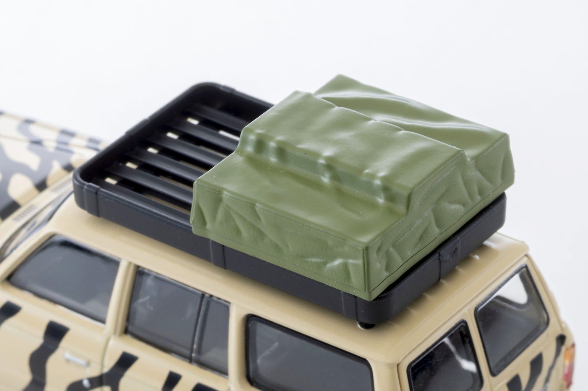 本製品には、細部の再現にこだわりぬいた大人向けのトミカ「トミカリミテッド ヴィンテージ」の 1/64スケールミニカーが1台付属。ルーフトップや荷台にはスペアタイヤなどの小物をのせることができ、遊びの幅が広がる商品です。