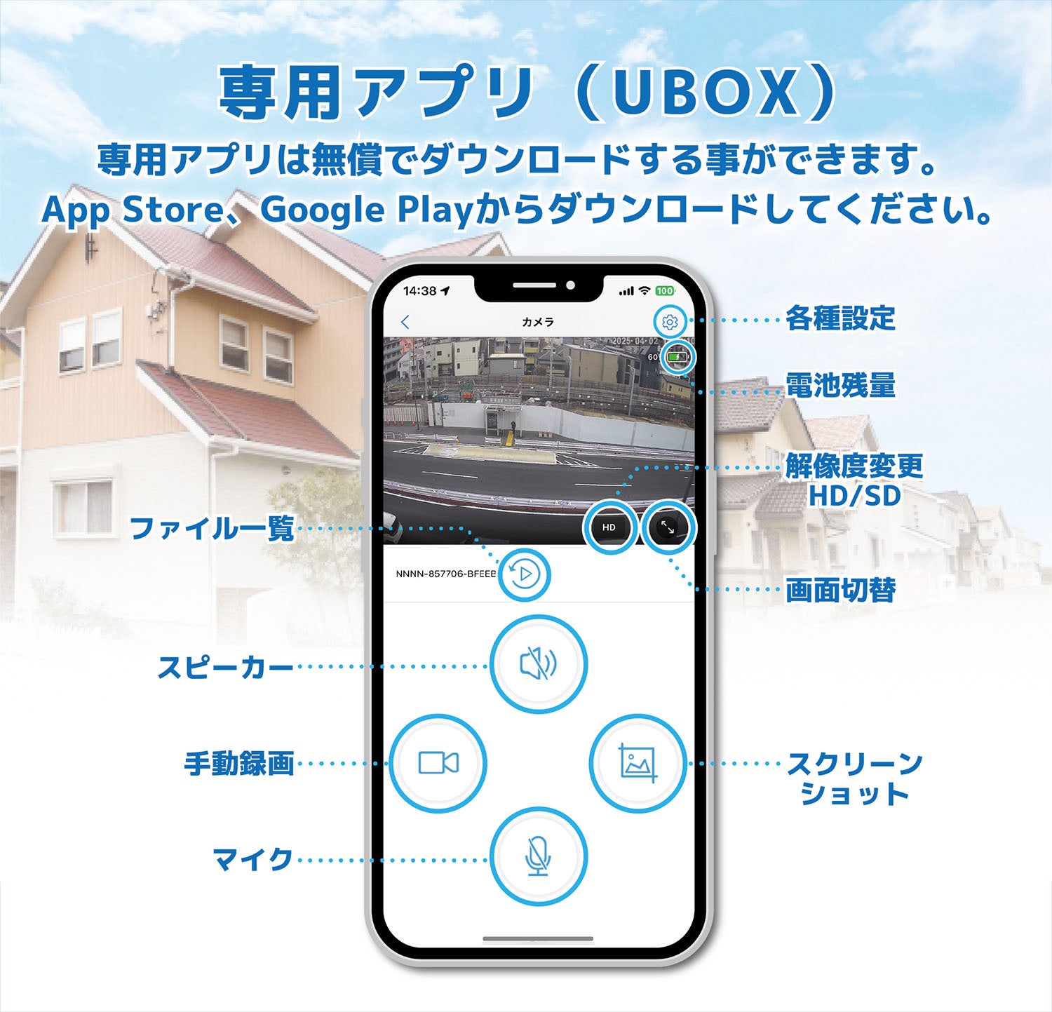 ● スマホアプリ対応:「UBOX」アプリで遠隔操作・映像確認