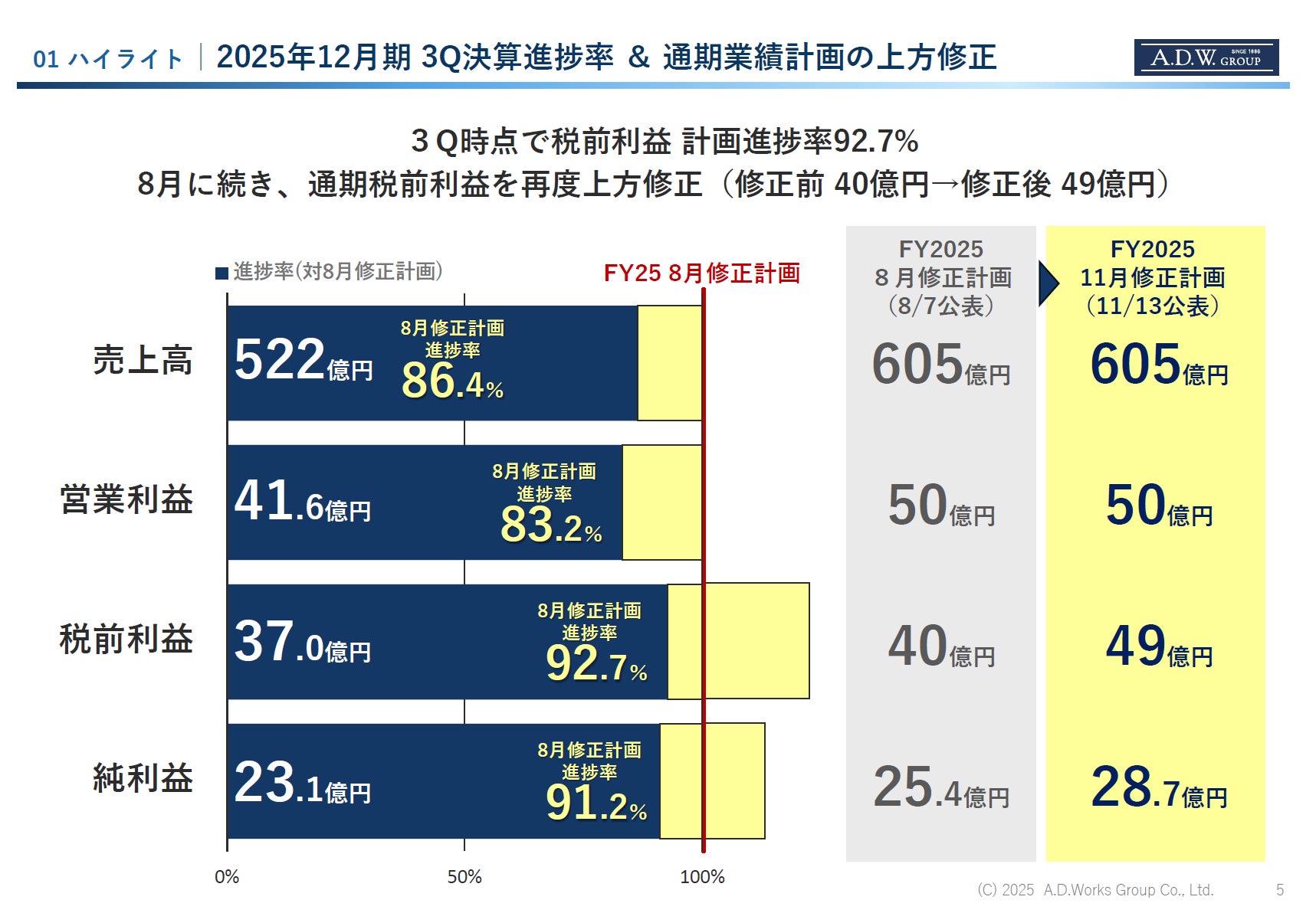 ADワークスグループ、2025年12月期 第3四半期決算を発表 税前利益は前年同期比207%超えと躍進