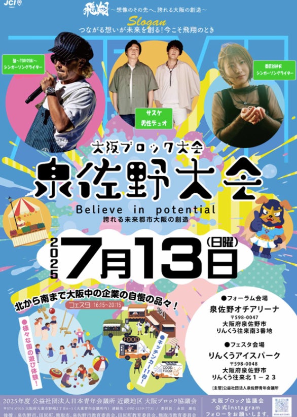 2025 年度大阪ブロック協議会では、「Believe in potential ~誇れる未来都市 大阪の創造~」をスローガンに掲げ、自らの可能性を信じ、理想とする未来を自らの手で切り拓き、誰もが誇れる大阪の創造を目指しています。 この想いを実現するために、ブロック協議会と大阪府下28地域の青年会議所が力を合わせ、大阪ブロック協議会最大の運動発信の場である「大阪ブロック大会」を、泉佐野の地で開催する意義があると私たちは考えます。