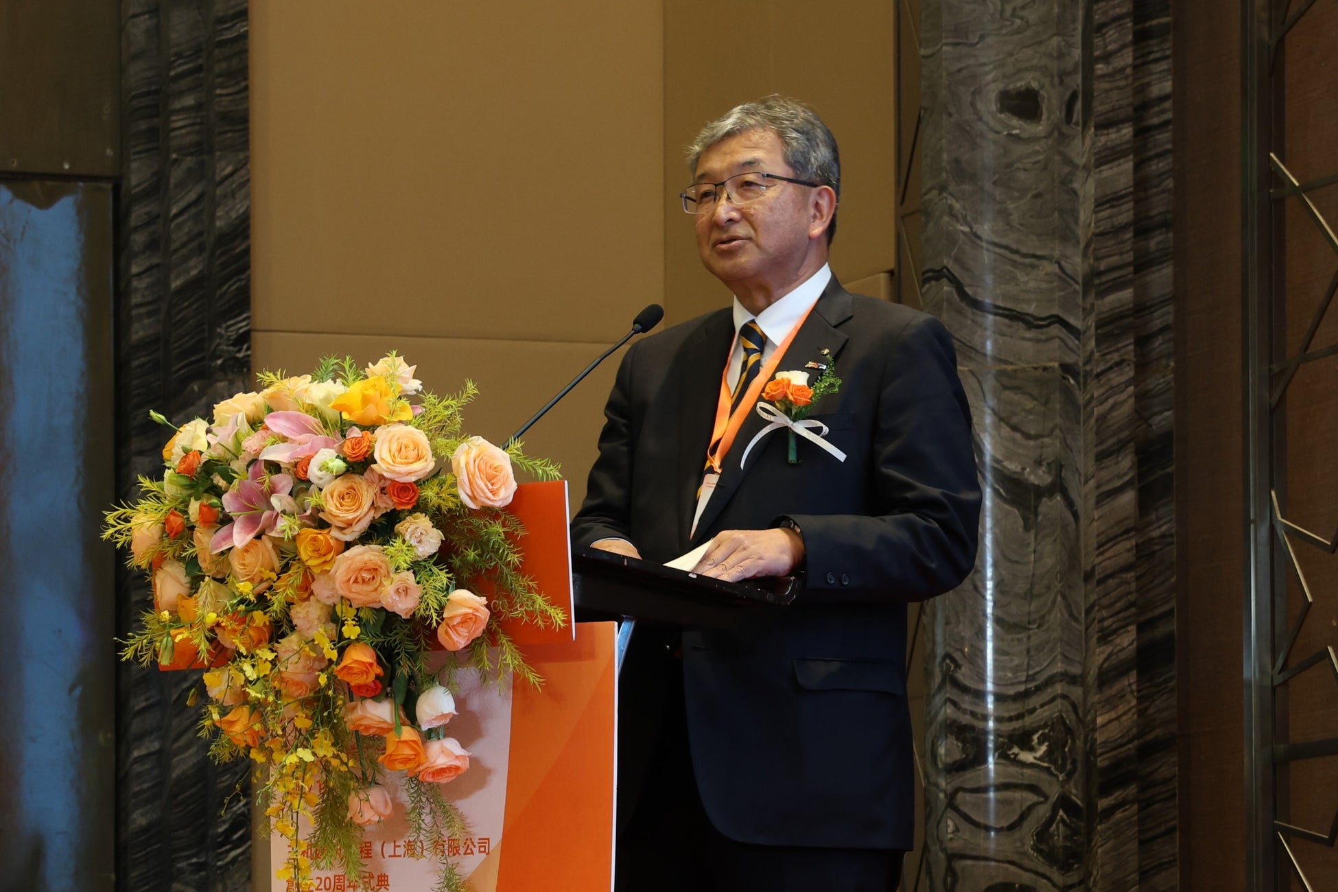 式典の主催者代表として、石田社長は挨拶で三機工業グループの海外重点拠点である三机建筑工程のこれまでの歴史を振り返り、20周年を迎えたことへの喜びと、長年にわたり上海での基盤を支えてくれたお客様・お取引先への感謝を述べました。また、三机建筑工程に対して、中国市場における環境負荷低減への貢献、スマートビルディングの推進などを通じて、三機工業グループ全体のグローバルな持続的成長を力強く牽引してくれることに大いなる期待を寄せました。