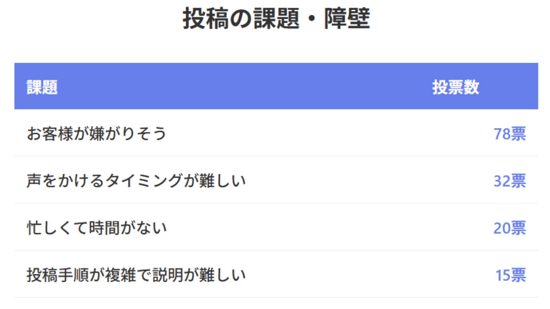 「お客様が嫌がりそう」が78票で断トツの1位となりました。
