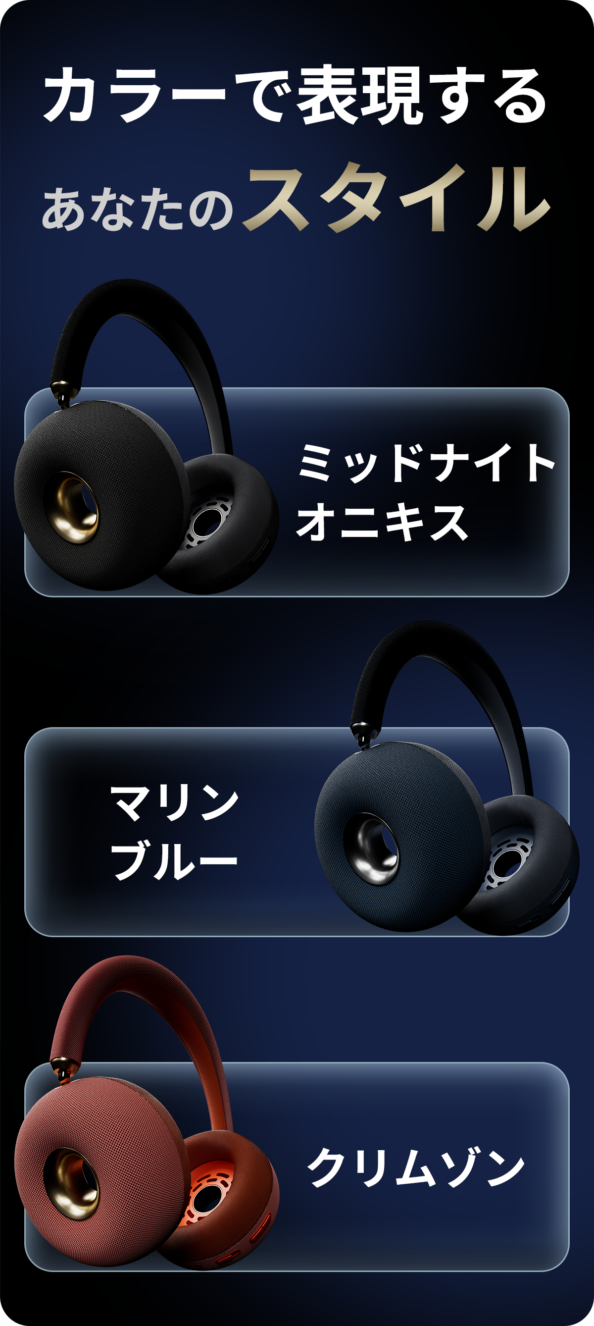ヘッドホンはあなたのスタイルに合わせるべきです。Movengine AirCore 「OWH 01」は、3つのカラーをご用意しています。