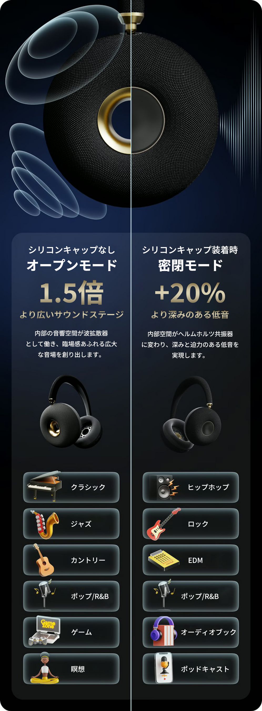 フルスペクトル没入を実現するデュアルドライバー。