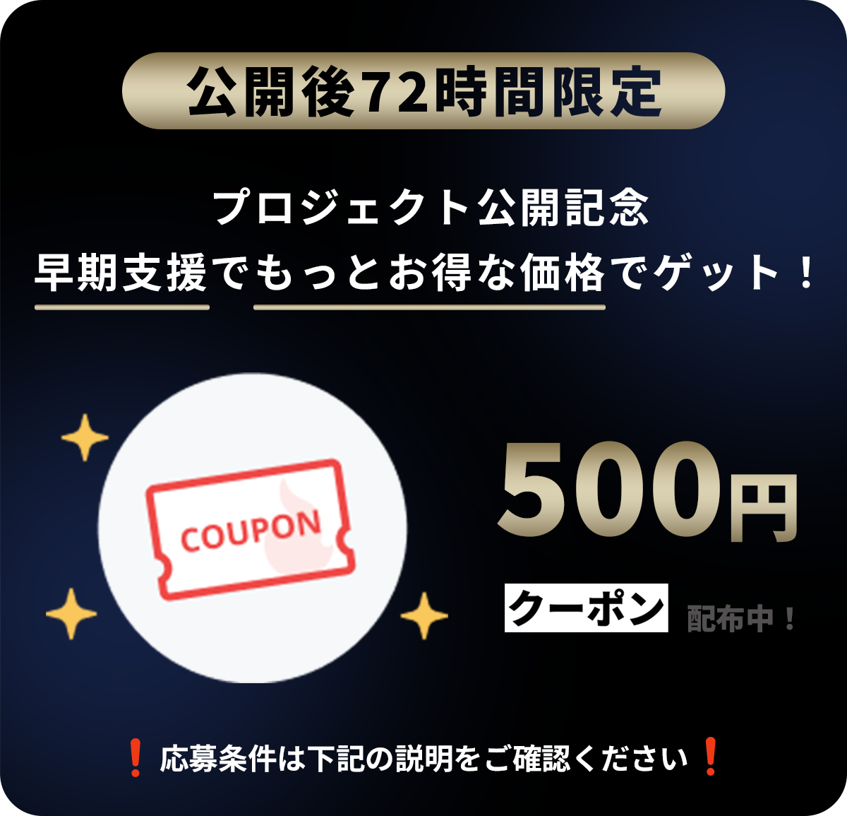 500円クーポンをプレゼント!早期支援でもっとお得な価格でゲット!