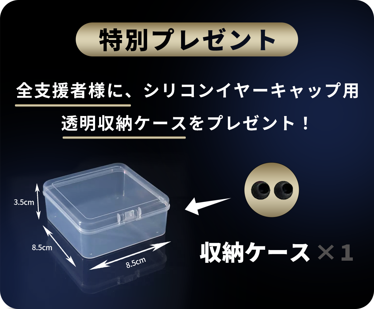 全支援者様に、シリコンイヤーキャップ用透明収納ケースをプレゼント!