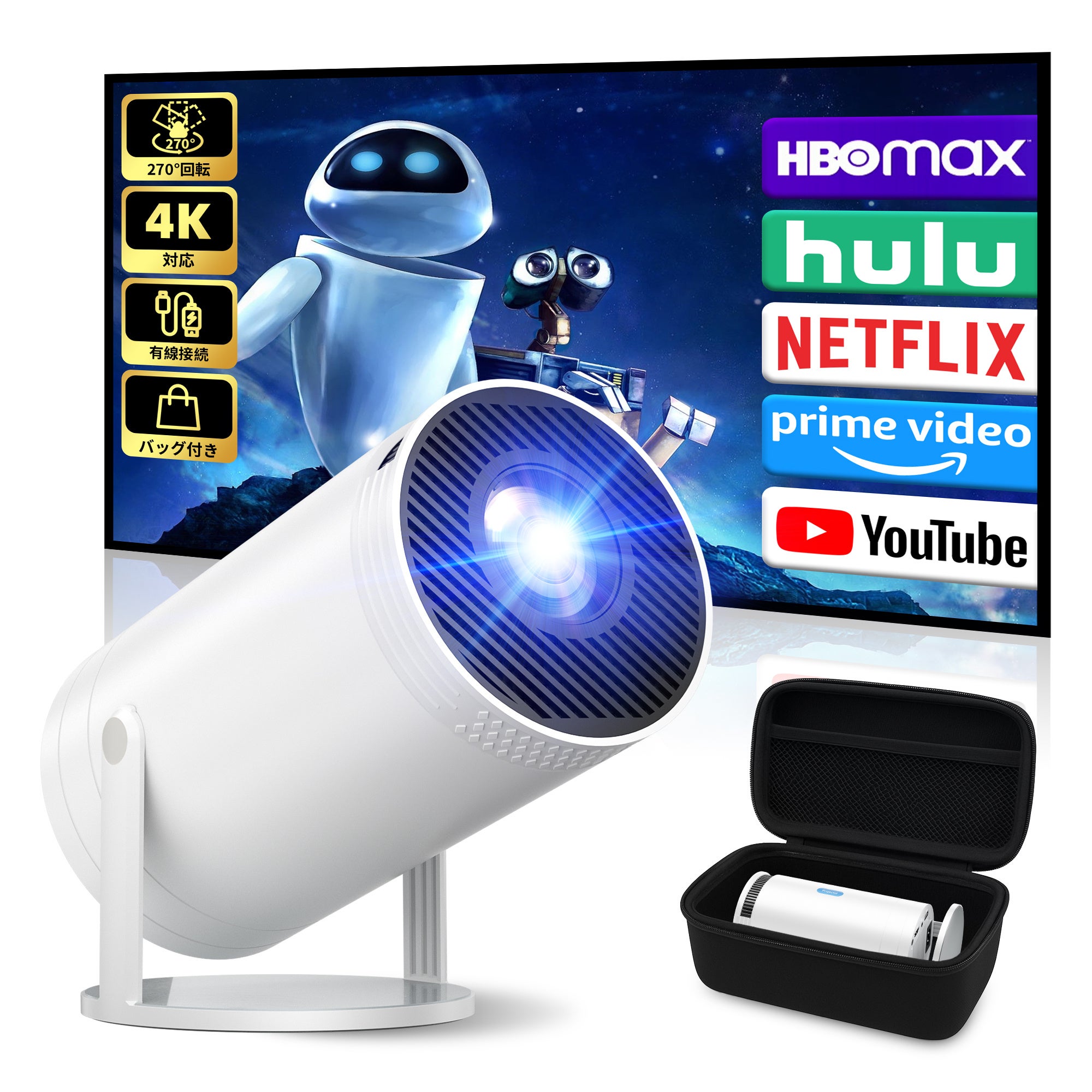専用防塵収納バッグが付属したこの小型モデルは、持ち運びと保管に安心。Wi-Fi に依存しない有線接続で、スマホのコンテンツを安定的に大画面で共有でき、プレゼンやゲーム、映画鑑賞など多シーンで活躍します。