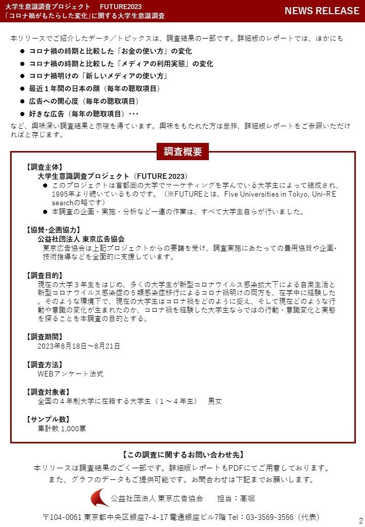 東京広告協会は上記プロジェクトからの要請を受け、調査実施にあたっての費用協賛や企画・技術指導などを全面的に支援しています。