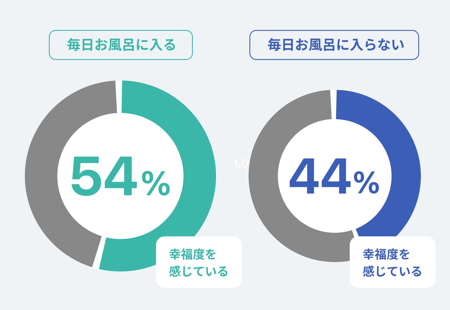 日々入浴を行うことで、体を温める温熱作用や水圧による身体への刺激によりリラックスが促されます。過去に行われた入浴頻度と主観的幸福度に関連する調査では、毎日湯船に浸からない人の幸福度を感じる場合は44%にとどまったのに対し、毎日湯船に浸かる人は幸福度を感じる割合が約54%と向上しました。(*1)毎日の入浴を続けることで、ストレスを軽減し、健康経営のアウトカムとして求められるプレゼンティーズム(生産性低下)要因へとダイレクトにアプローチできます。