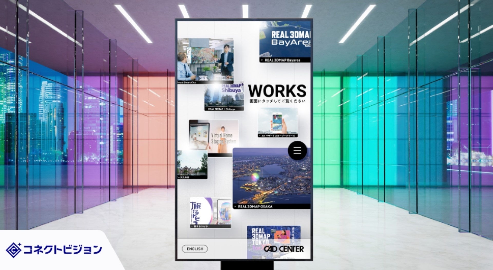 当社は、博物館や観光施設といった公共施設をはじめとして様々な場所に合わせてデジタルコンテンツを納品して参りました。 「コネクトビジョン」は、そこで培った実績とタッチパネルでの利用を想定し開発を行ったデジタルサイネージシステムです。