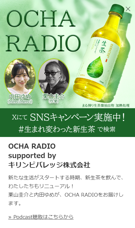 新規オリジナルポッドキャスト番組「OCHA RADIO supported byキリンビバレッジ株式会社」を制作し、本日4/16(火)より配信開始いたしました。(制作:株式会社ミュージックバード)