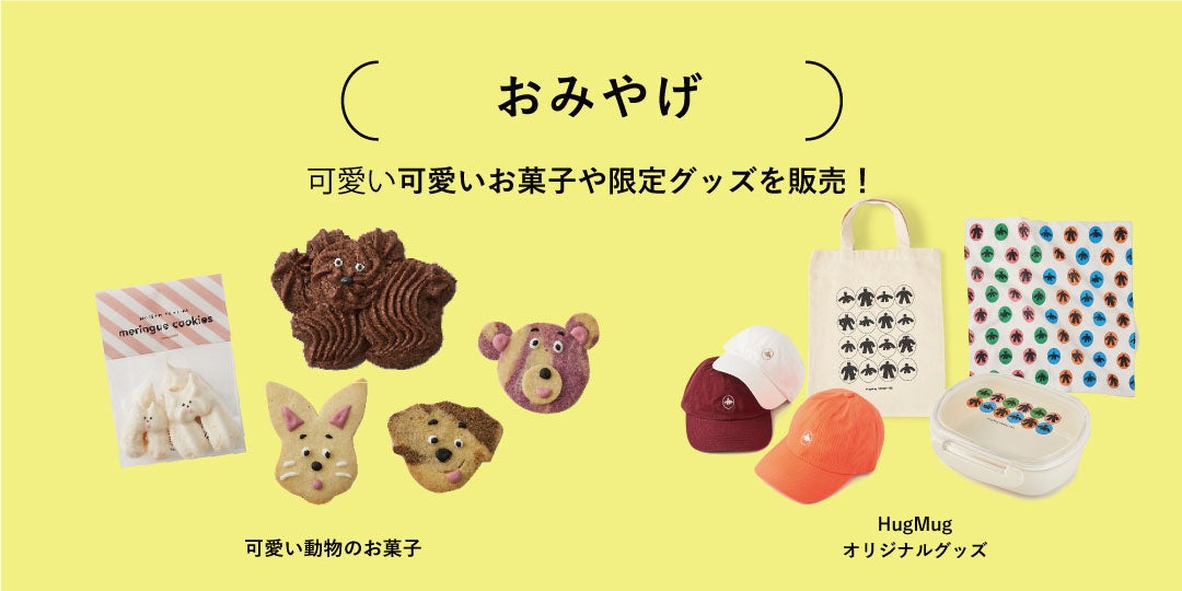 可愛いお菓子や限定グッズも販売!HugMugがセレクトした「maison de bonbons」、「Maison terrier」、「oyaMADE」の可愛い動物のお菓子を限定販売!HugMug FAMILY FESのオリジナルグッズも販売します。