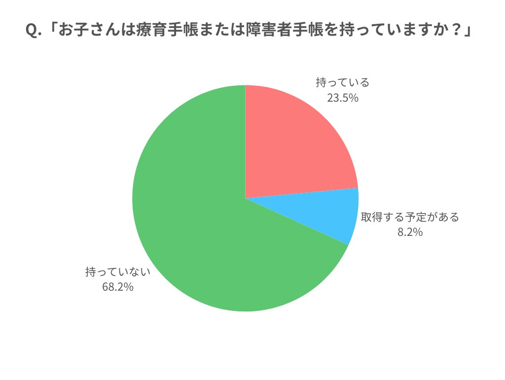 お子さんは療育手帳・障害者手帳を「持っている」・「取得する予定がある」と回答した方は全体の約3割という結果になりました。