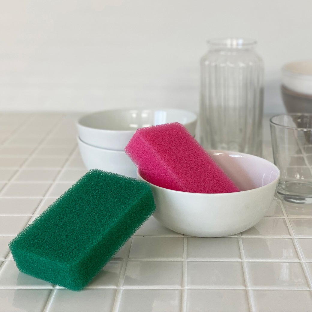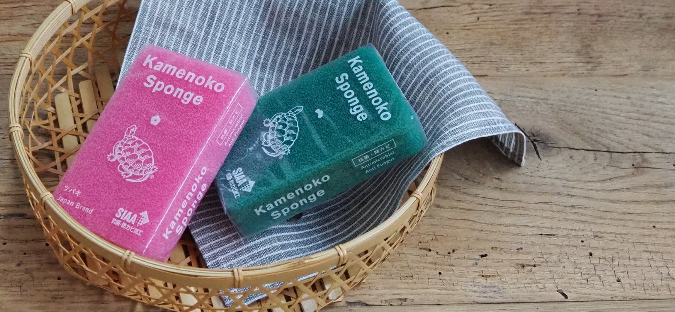 【 商品情報 】 亀の子スポンジ カラー : ツバキ/マツ 価格 : 各374円(税込)