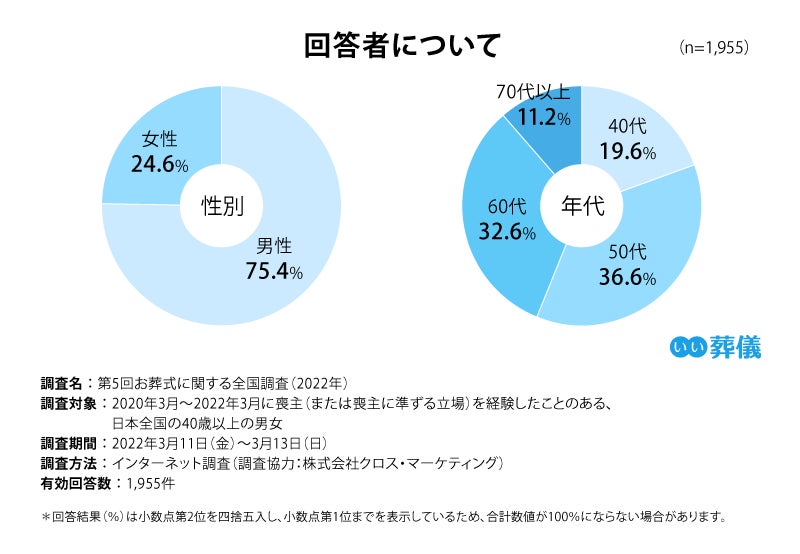 調査対象:2020年3月~2022年3月に喪主(または喪主に準ずる立場)を経験したことのある、日本全国の40歳以上の男女