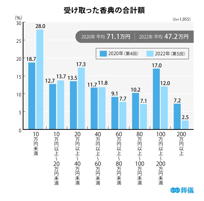5. 【費用/香典】参列者の減少により受取額は平均47.2万円で2020年から23.9万円の下落