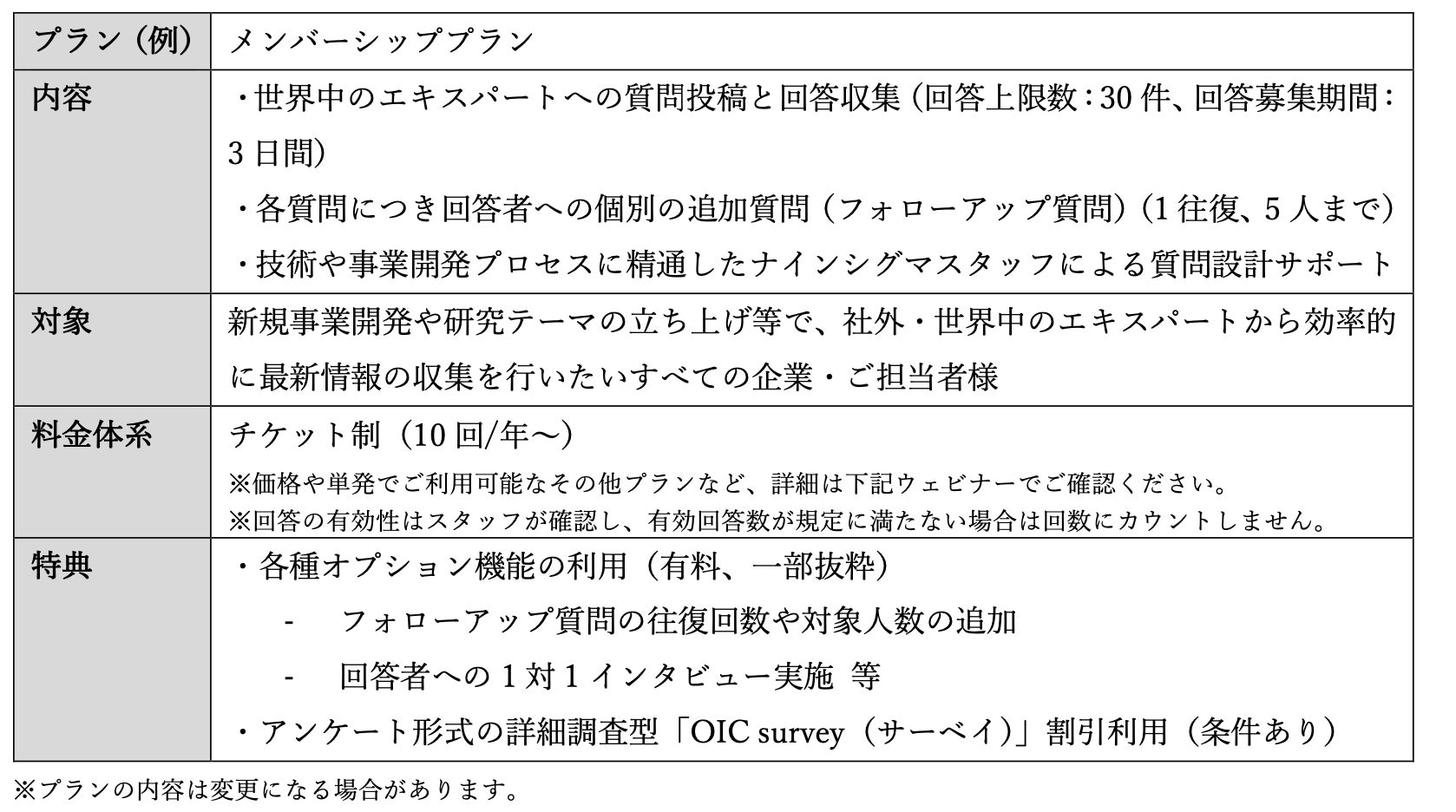 ナインシグマ・ホールディングス株式会社(本社:東京都千代田区、代表取締役社長:諏訪 暁彦、以下「ナインシグマ」)は、次世代を担う新規事業開発に取り組む企業・チームが、ニーズや先行事例の情報収集、自社技術の課題把握等に関する疑問や悩みを、世界中の技術系エキスパートに直接質問し3日で回答が得られる新サービス「OIC direct(オーアイシー・ダイレクト)」(以下、「本サービス」)の提供を本日より開始いたします。新規事業開発や研究テーマ立ち上げの初期段階においては、アイデアの収益性や将来性などプロジェクト推進に必要な「判断材料」の収集がボトルネックとなり、活動が停滞してしまうケースは少なくありません。本サービスは、どんな企業・チームでも、グローバル水準の最新情報に手間なくアクセスできる事業環境をつくることで、日本企業が持つ技術力や潜在力をいかし、市場優位性のあるプロダクトやサービスをスピーディに生み出すことに役立ちます。
