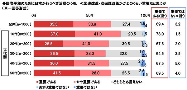 ネットエイジア調べ 国際平和のために日本が行うべきこと 10代では78%が「国連改革・安保理改革」を重要視