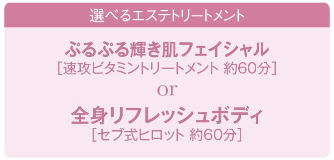 下記のフェイシャルまたはボディコースのいずれか1コースをお選びいただけます。