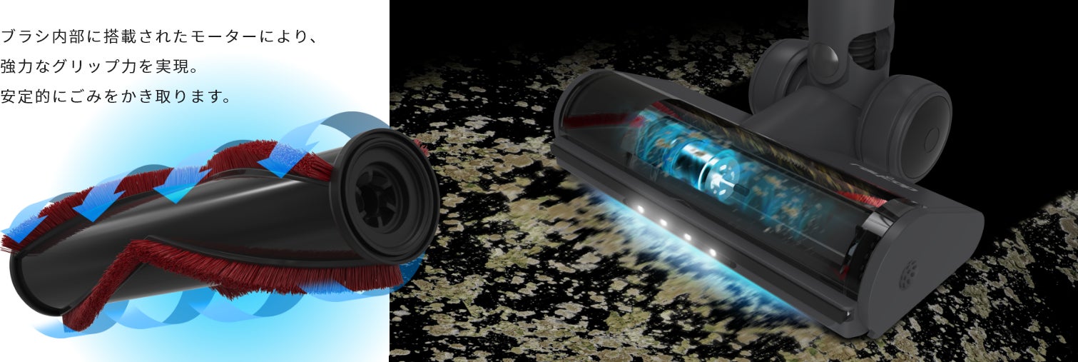 ブラシ内部のモーターが安定したゴミのかき取りを実現